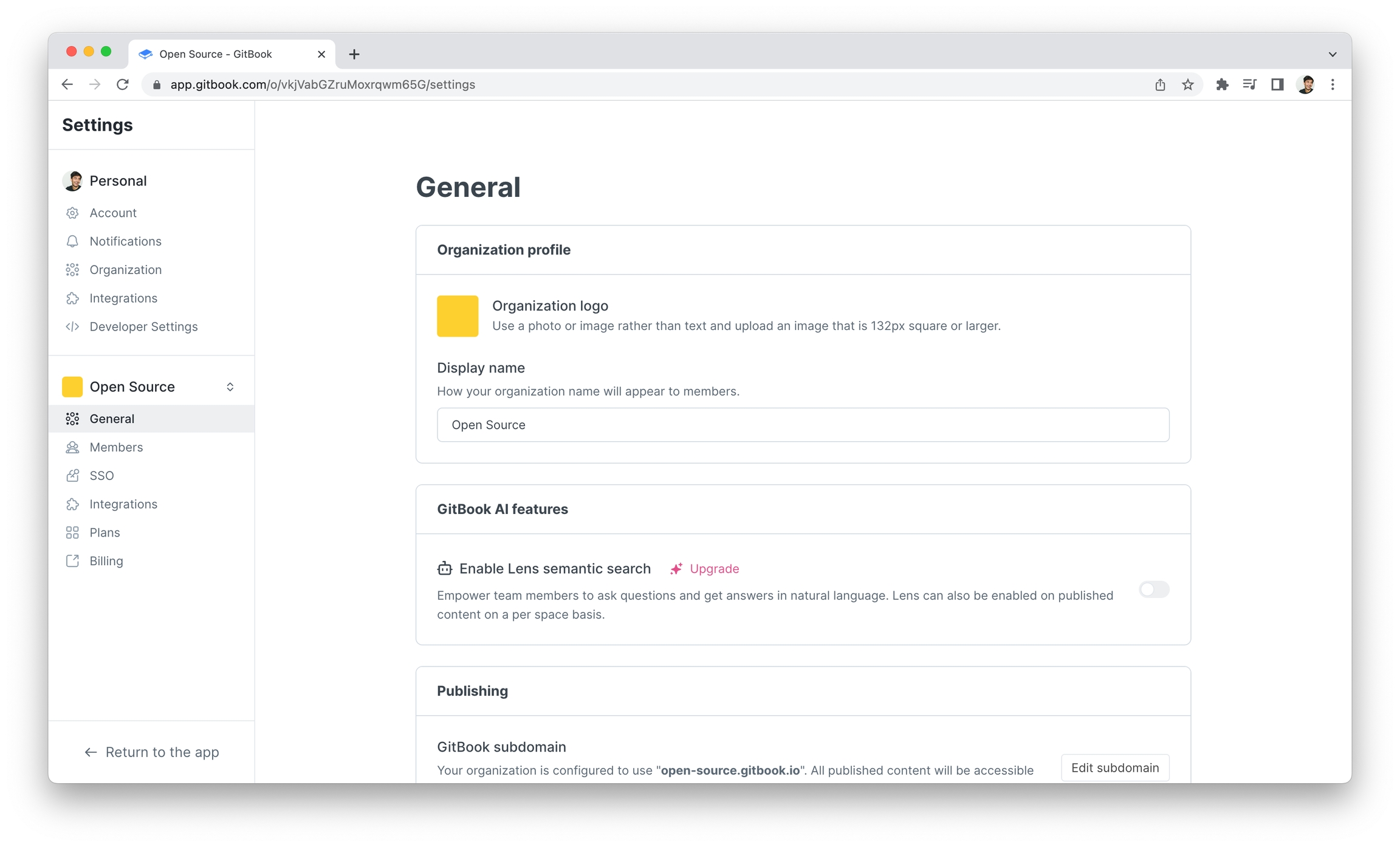 An organization in GitBook is the entity of a place that users, spaces, and collections belong to.