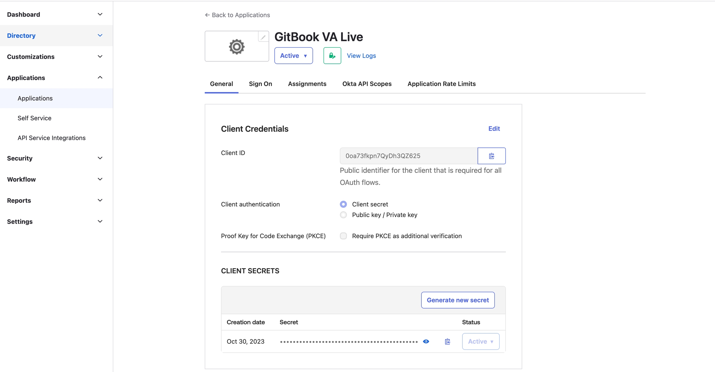 For the client_id field, copy the value from the application's page in Okta dashboard
