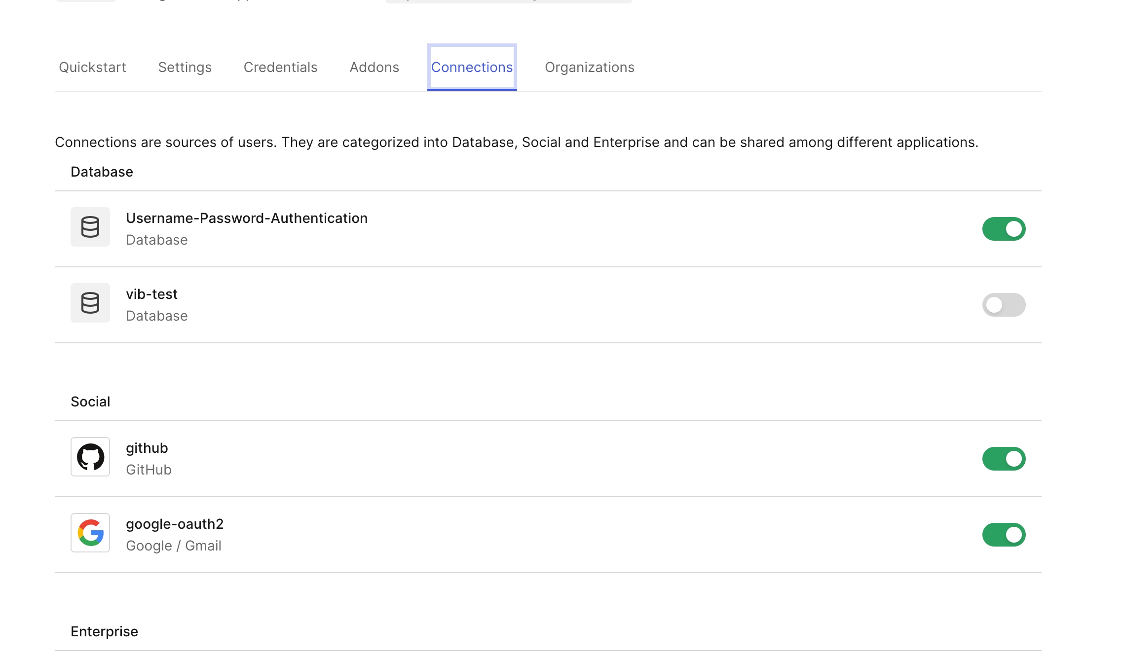 Click on Settings next to Quickstart, and make a note of the Domain, Client ID, and Client Secret. We will need these to configure our Auth0 Visitor Authentication Integration.