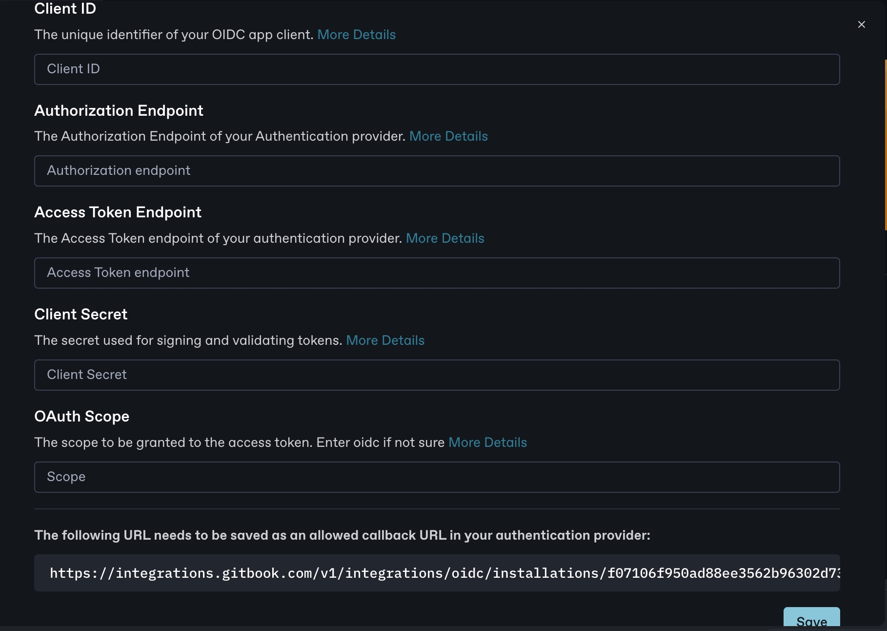 OIDC stands for OpenID Connect, and it's an identity layer built on top of OAuth. Many identity providers abide by OIDC, and GitBook's OIDC integration for Visitor Authentication allows you to publish your space behind Visitor Authentication, and access to the content is controlled by your Identity Provider